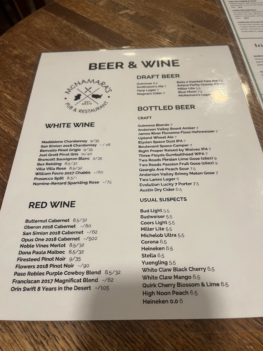 Traditional beef stew with carrots, peas, and onions in a homemade Guinness broth, served on a bed of mashed potatoes.